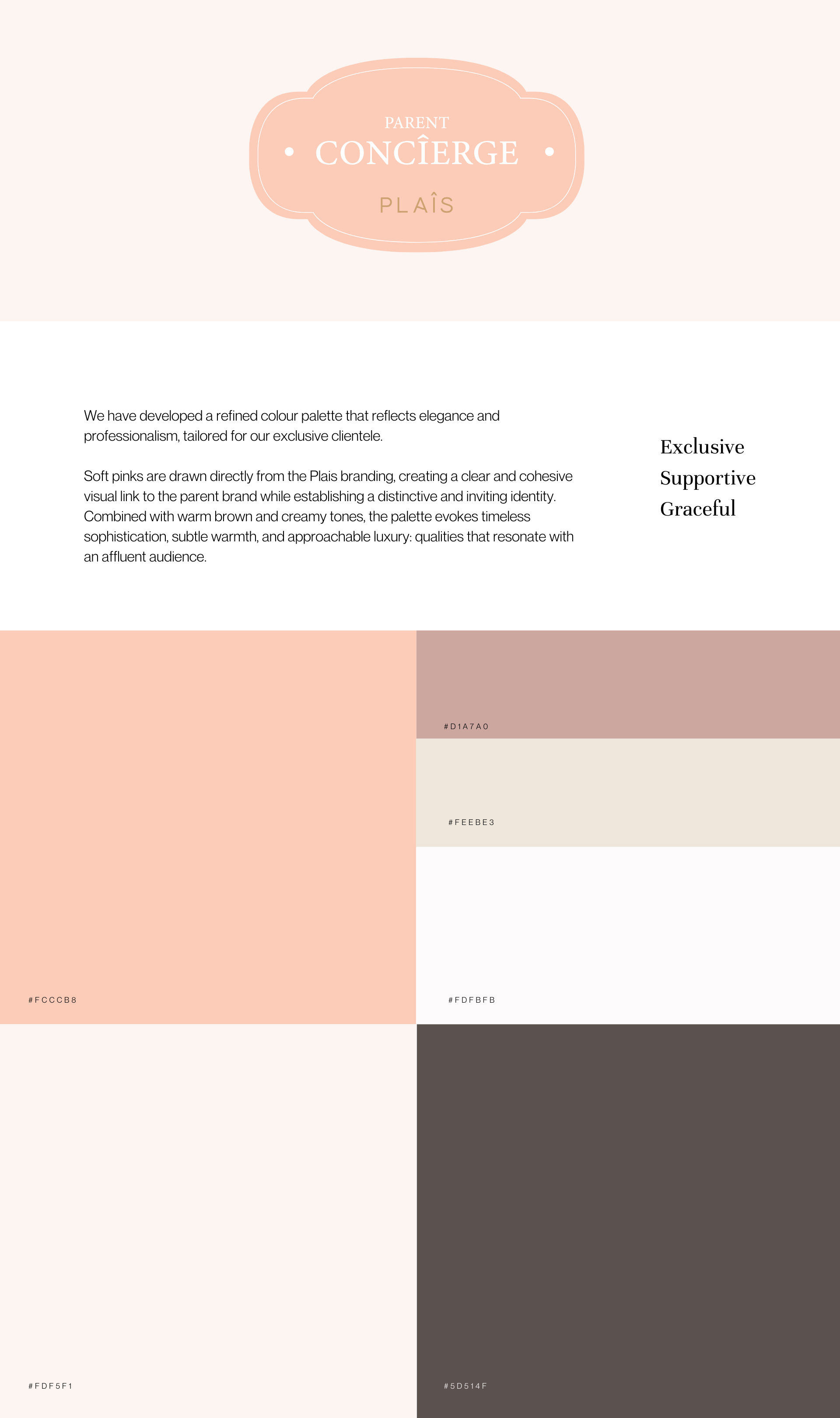 The design approach focused on creating a distinct yet connected identity for the Plaîs Parent Concierge Program. Colour exploration centred on pink and teal, with teal selected for its more sparing use within the parent brand, allowing differentiation while maintaining cohesion.